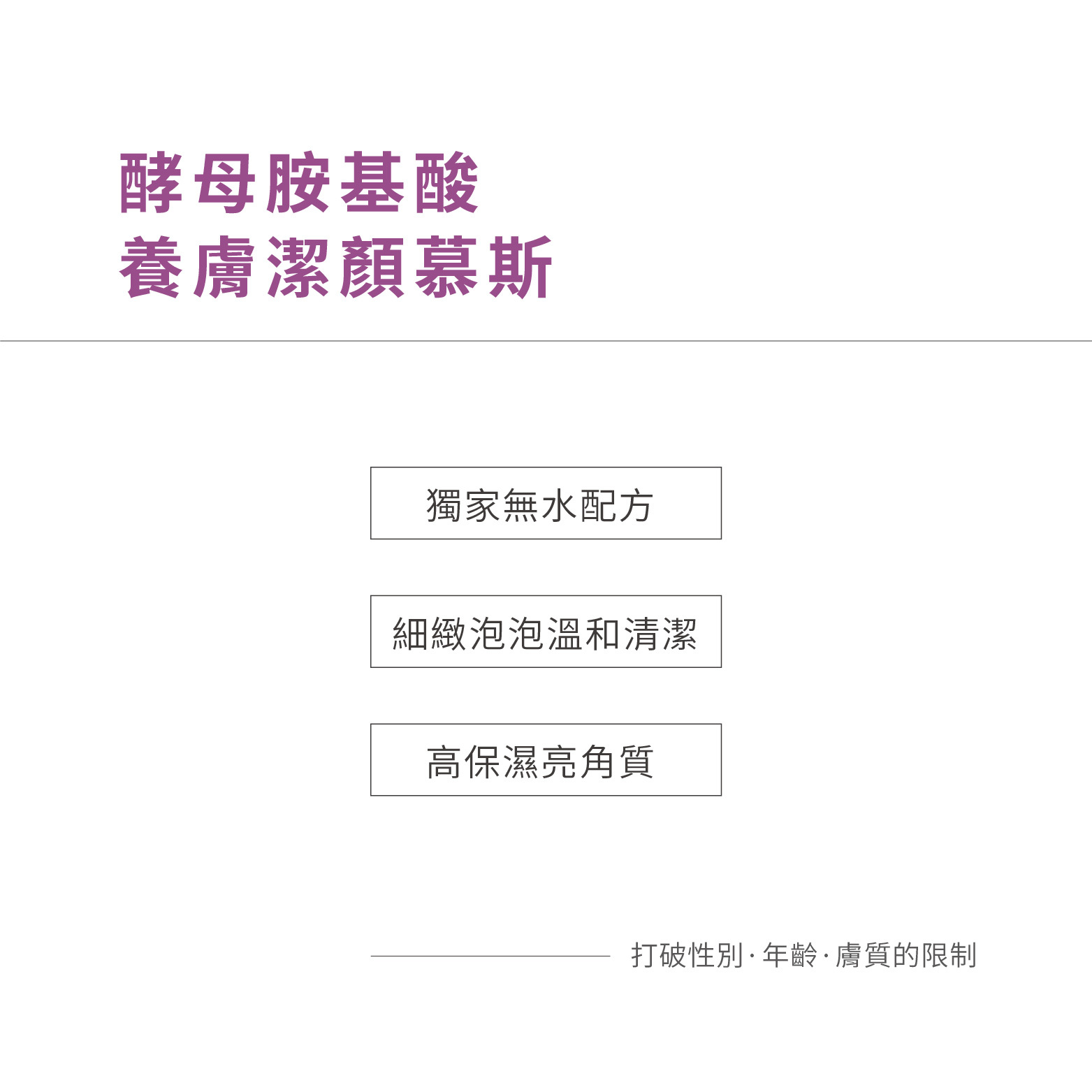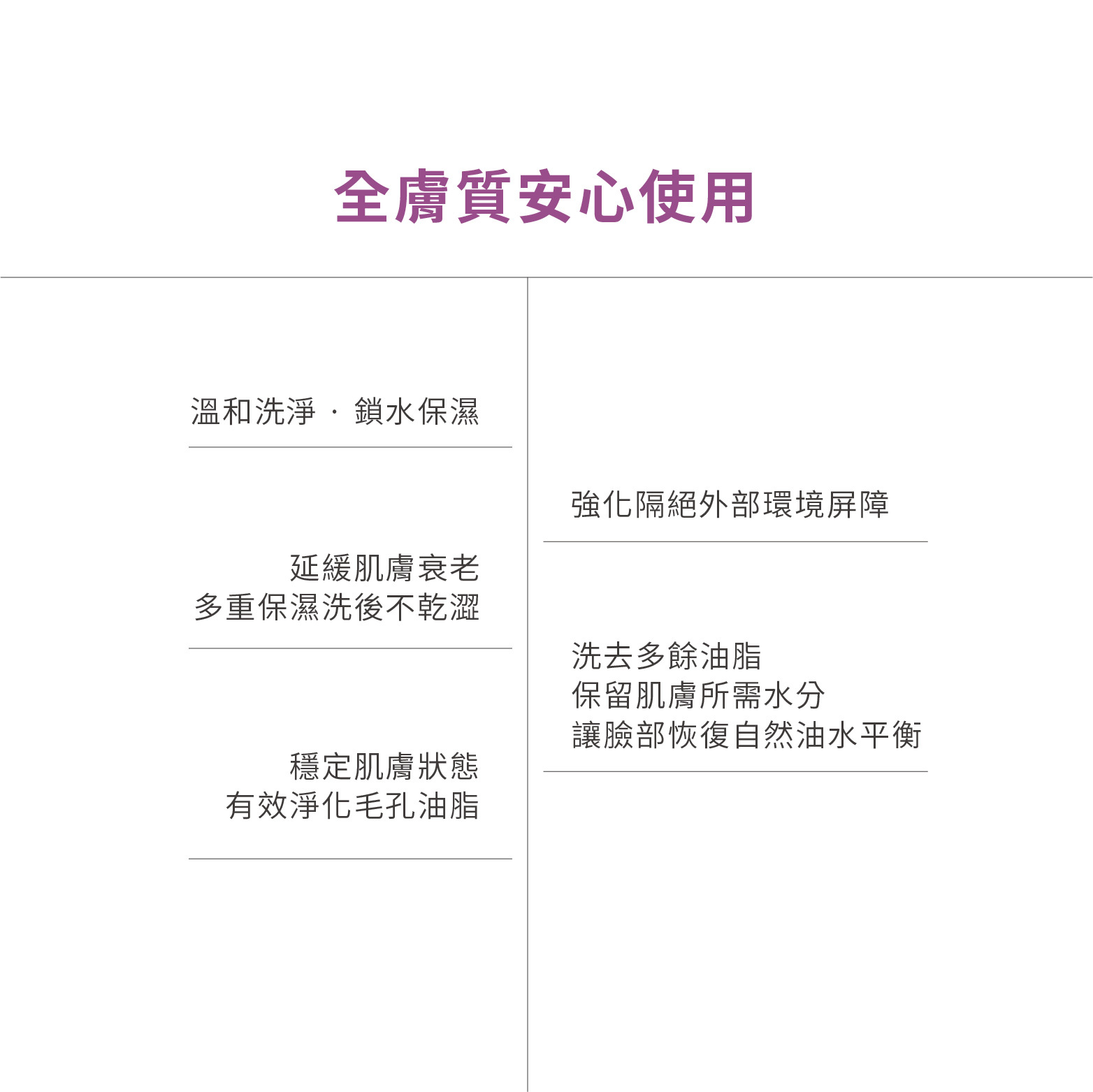 適用全膚質,打破性別、年齡、膚質的限制,實現零界限。