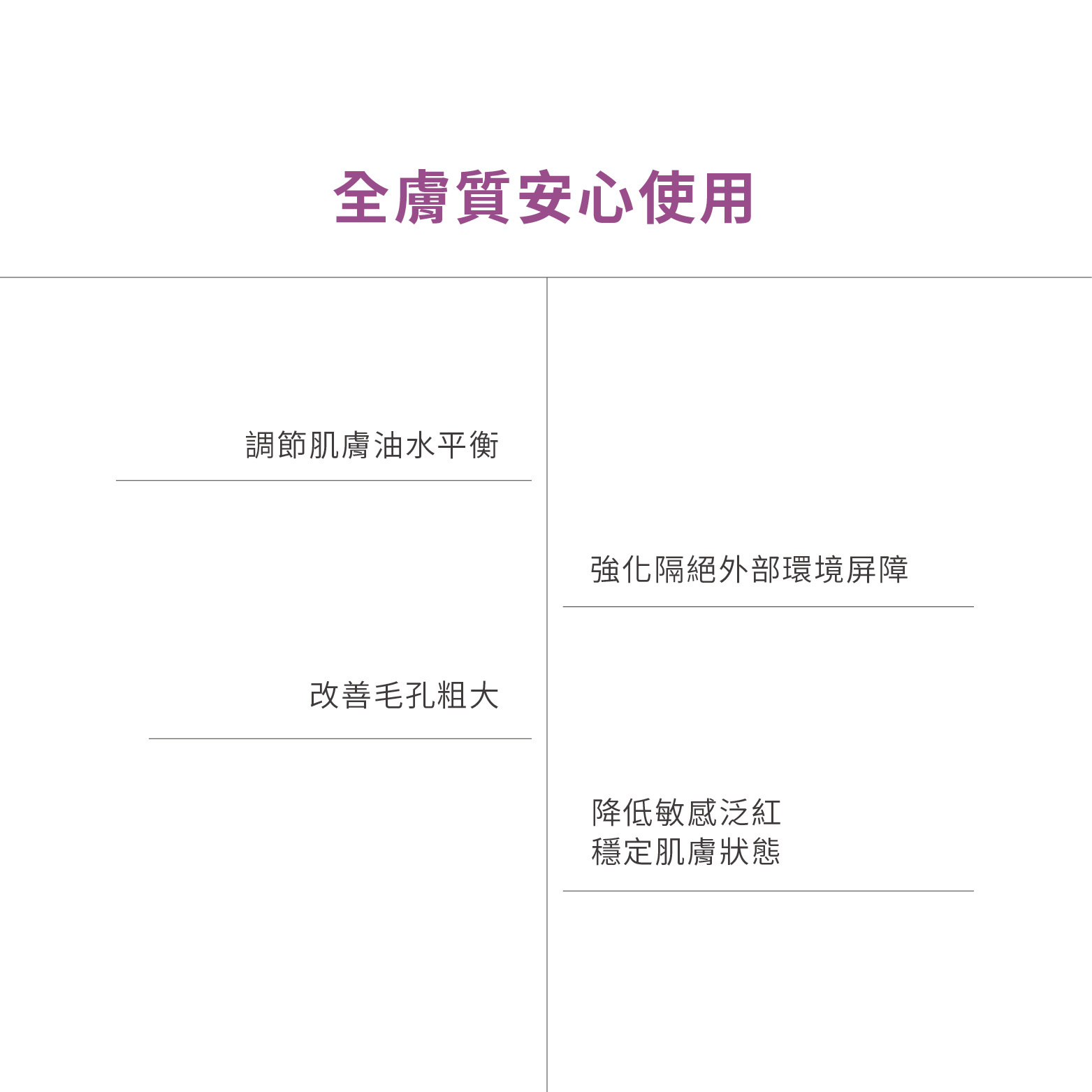 適用全膚質,打破性別、年齡、膚質的限制,實現零界限。