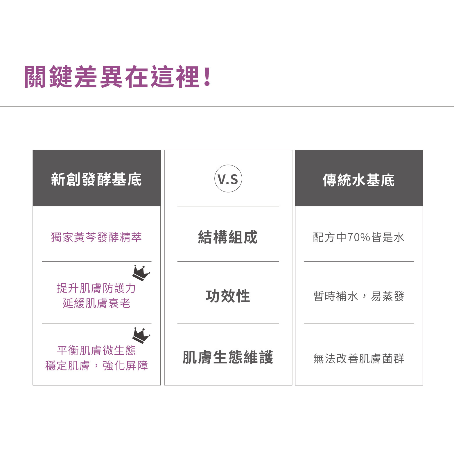嚴選環保永續成分,獨家黃芩發酵精萃基底,溫和調理肌膚穩定油水平衡,舒緩肌膚乾燥、收斂毛孔粗大,重現透亮肌膚狀態,天然海洋能量,提供長效保濕,緊緻毛孔與淡化細紋問題,使肌膚保持水潤透亮。