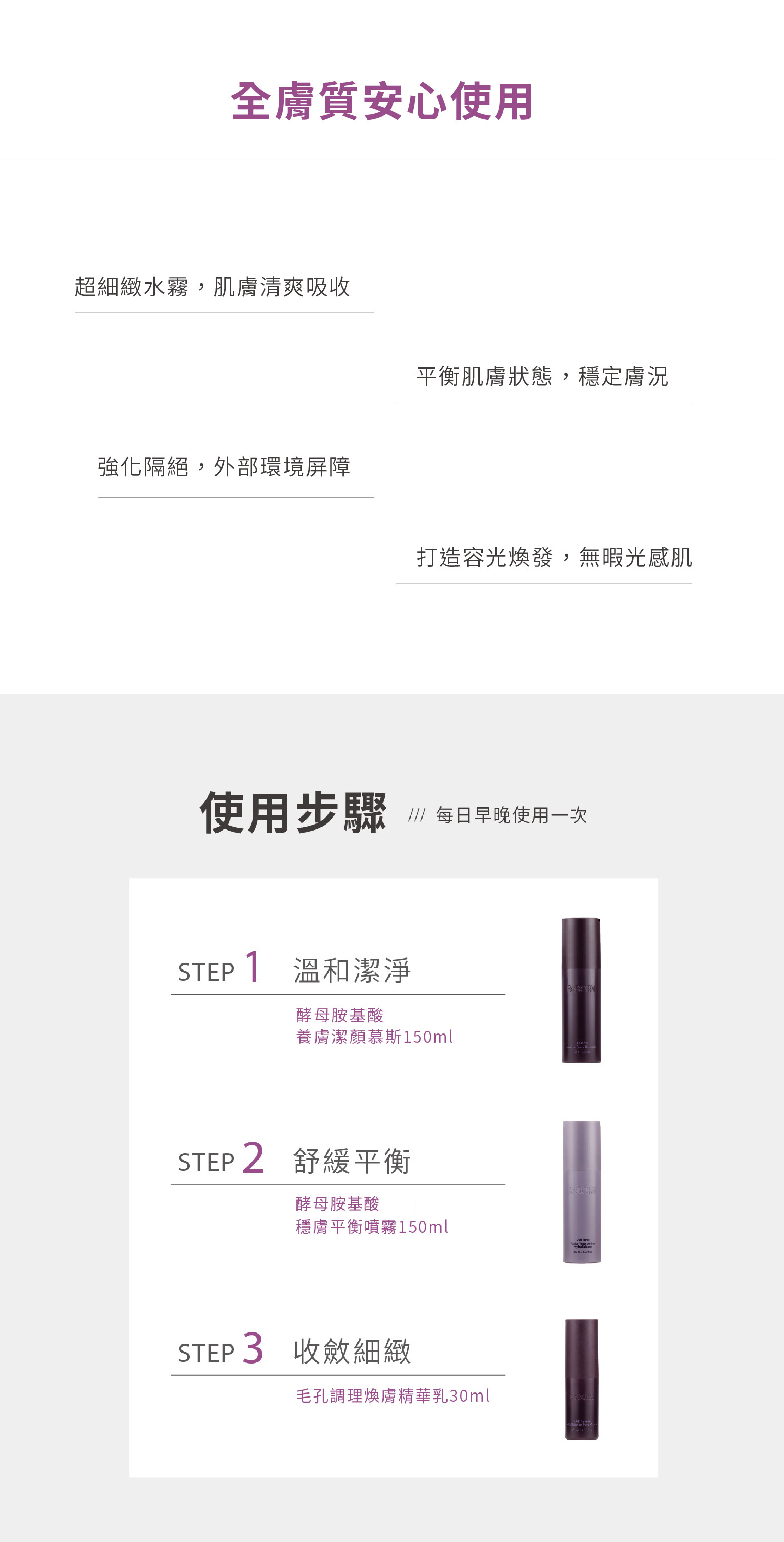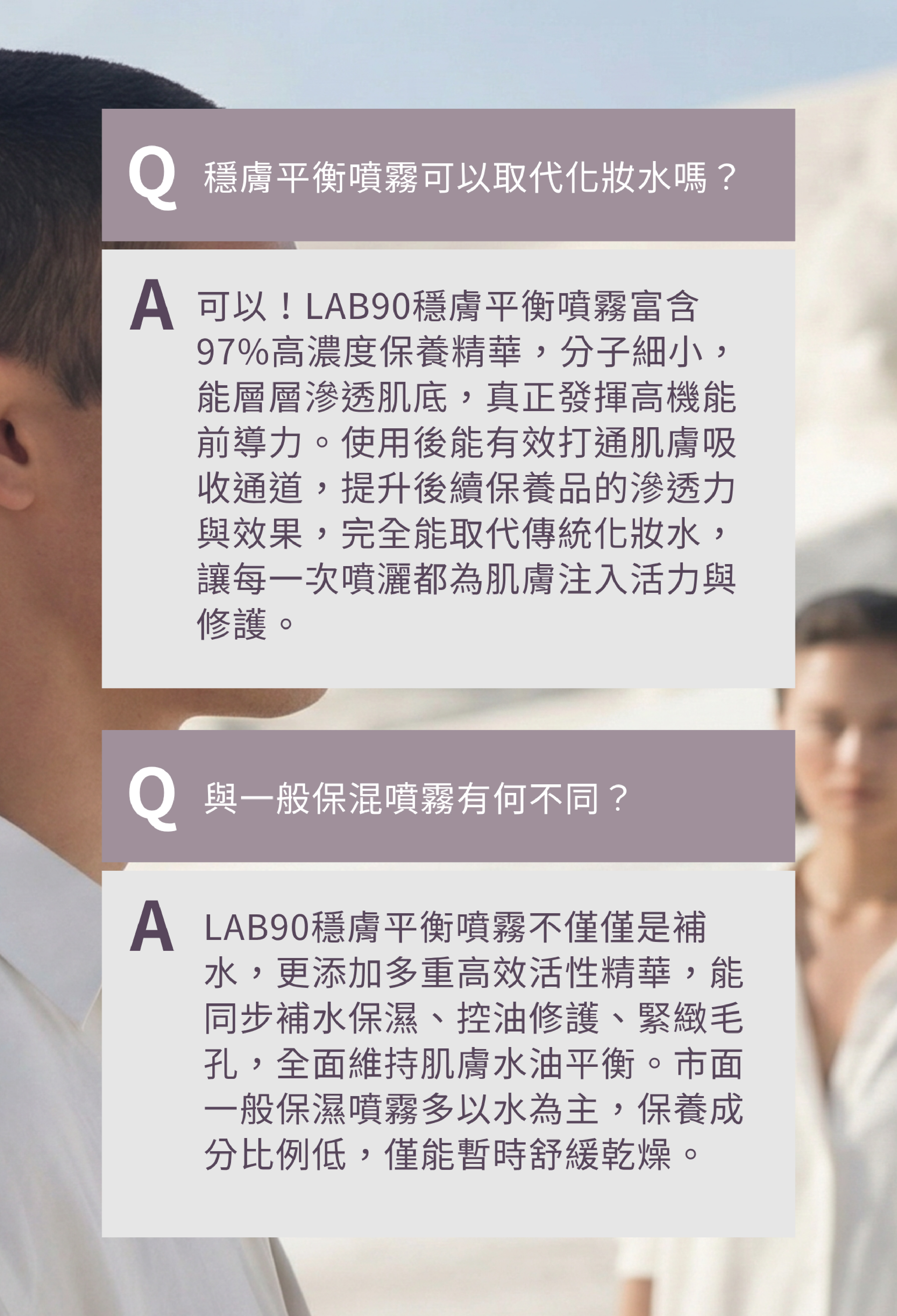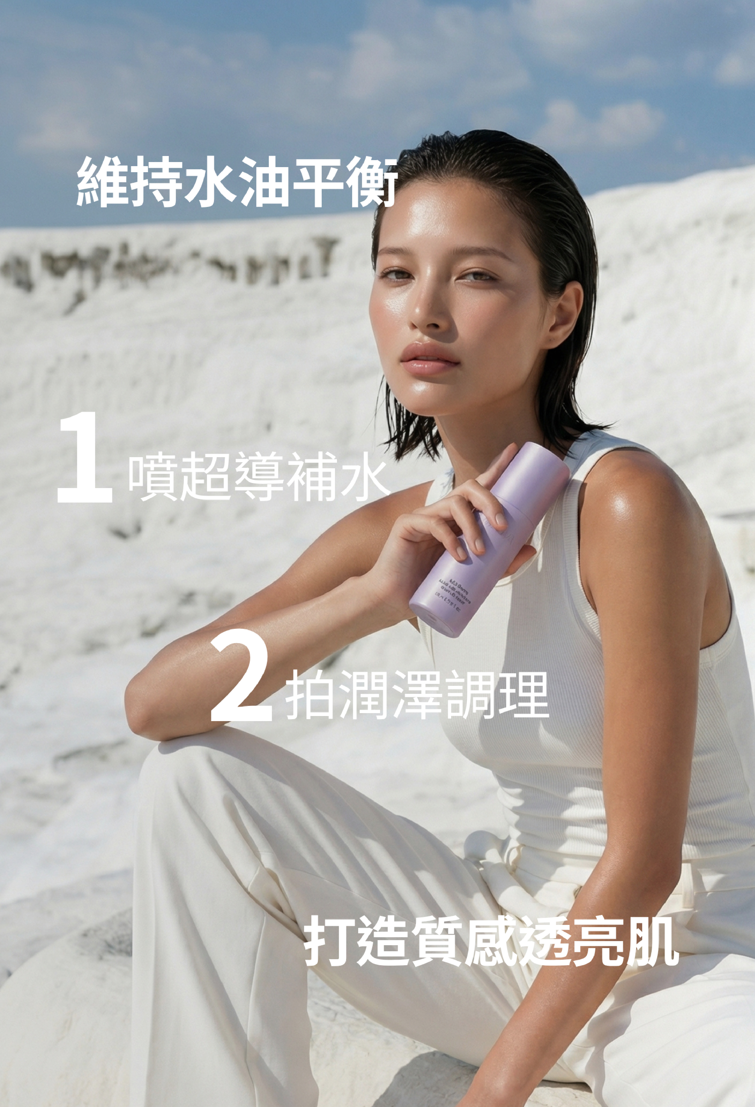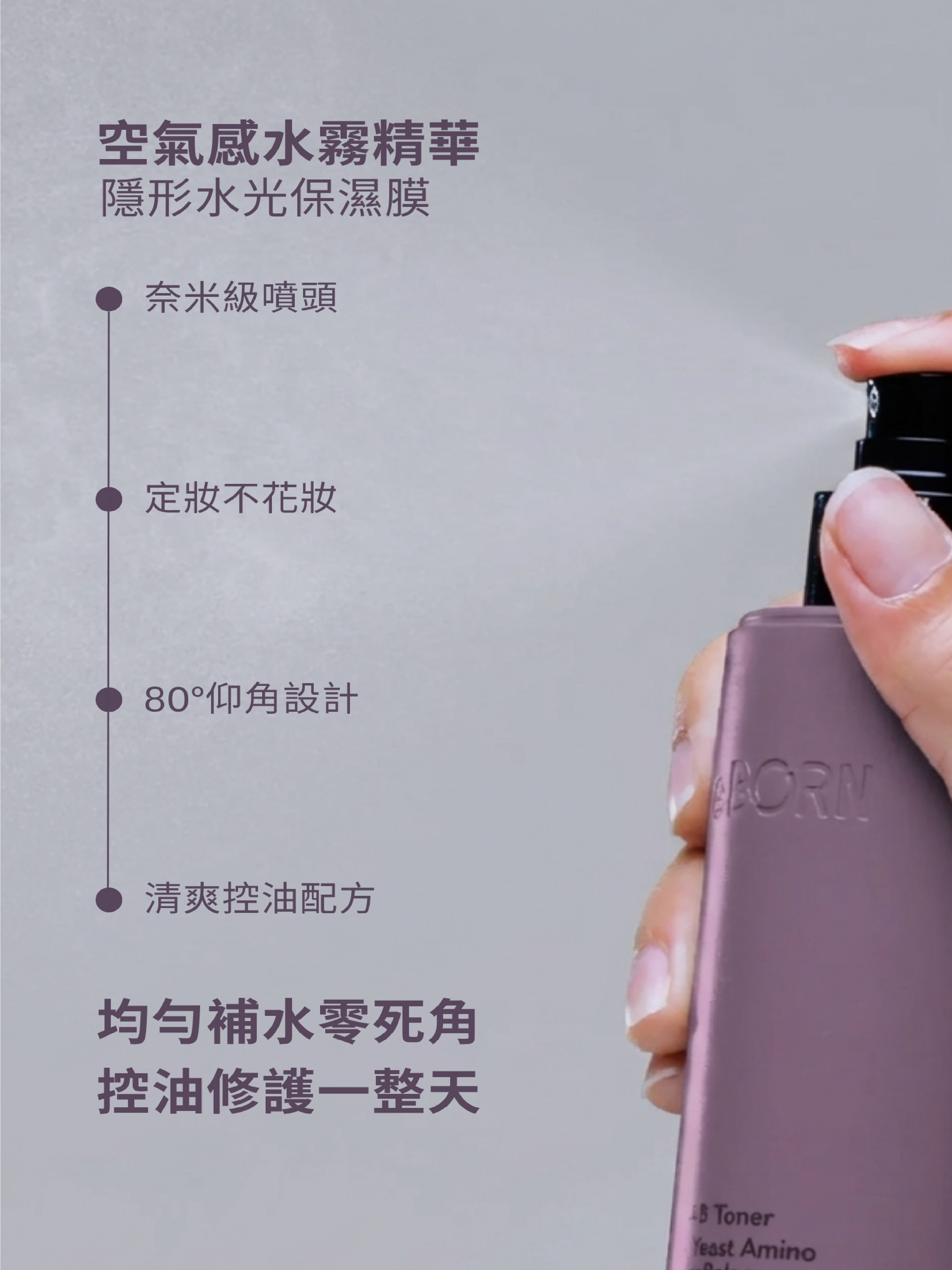 改善外油內乾,維持肌膚水油平衡。以黃芩發酵精萃取代純水,結合 90% 雙酵精萃與多重植萃保養成分,為肌膚帶來補水、控油、舒緩與修護。搭配海葡萄萃取、粟米粹精華、絲瓜水潤精萃及毛孔緊緻精華,幫助改善乾燥粗糙、外油內乾與毛孔粗大,維持水油平衡,讓膚況更穩定細緻。超微粒水霧清爽不黏膩,妝前妝後皆可使用,也適合作為醫美術後保養;輕巧好攜帶,隨時為肌膚補水,像是隨身帶著走的保濕充電器。