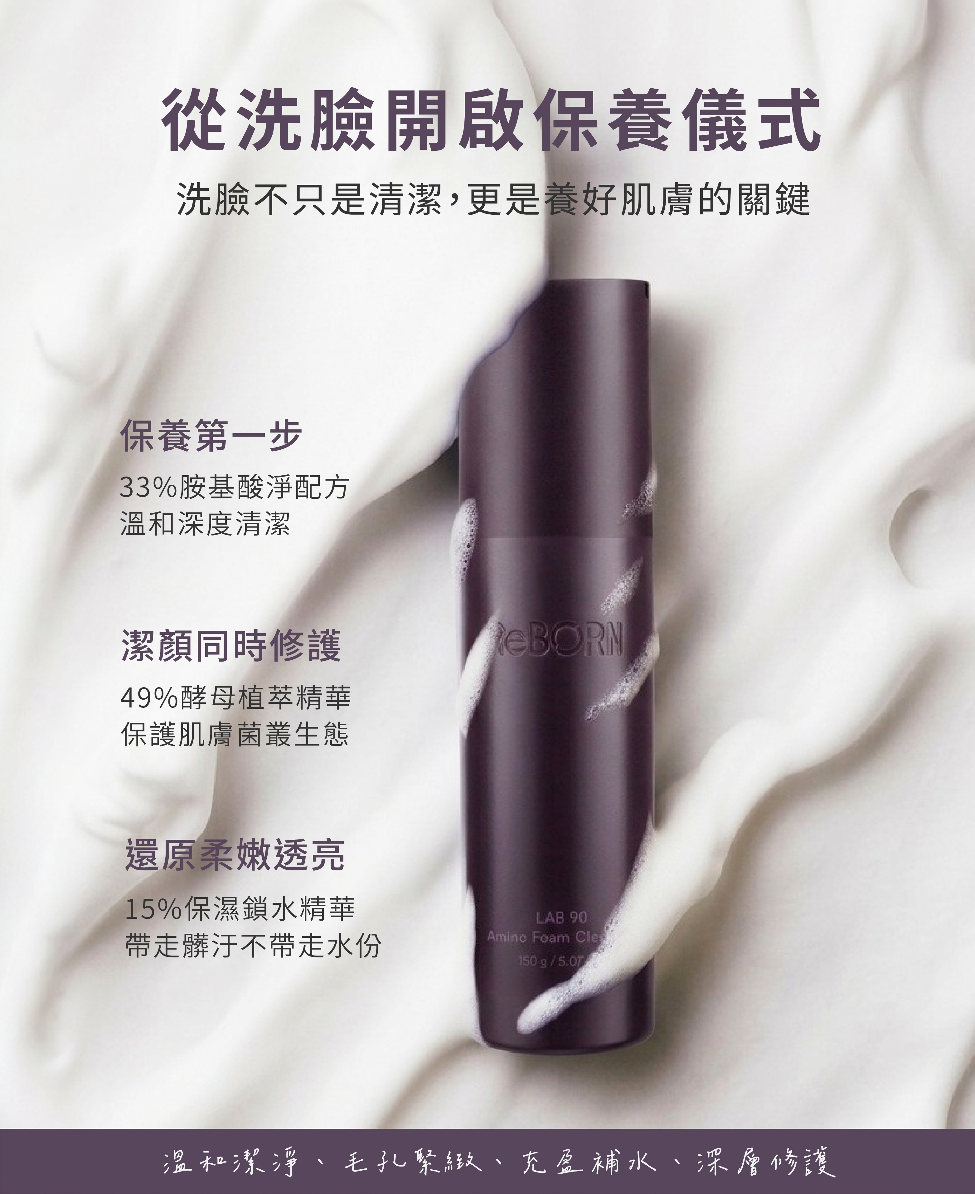 ReBORN母親節必BUY囤貨組_LAB90 酵母胺基酸養膚潔顏慕斯150mlX3入。