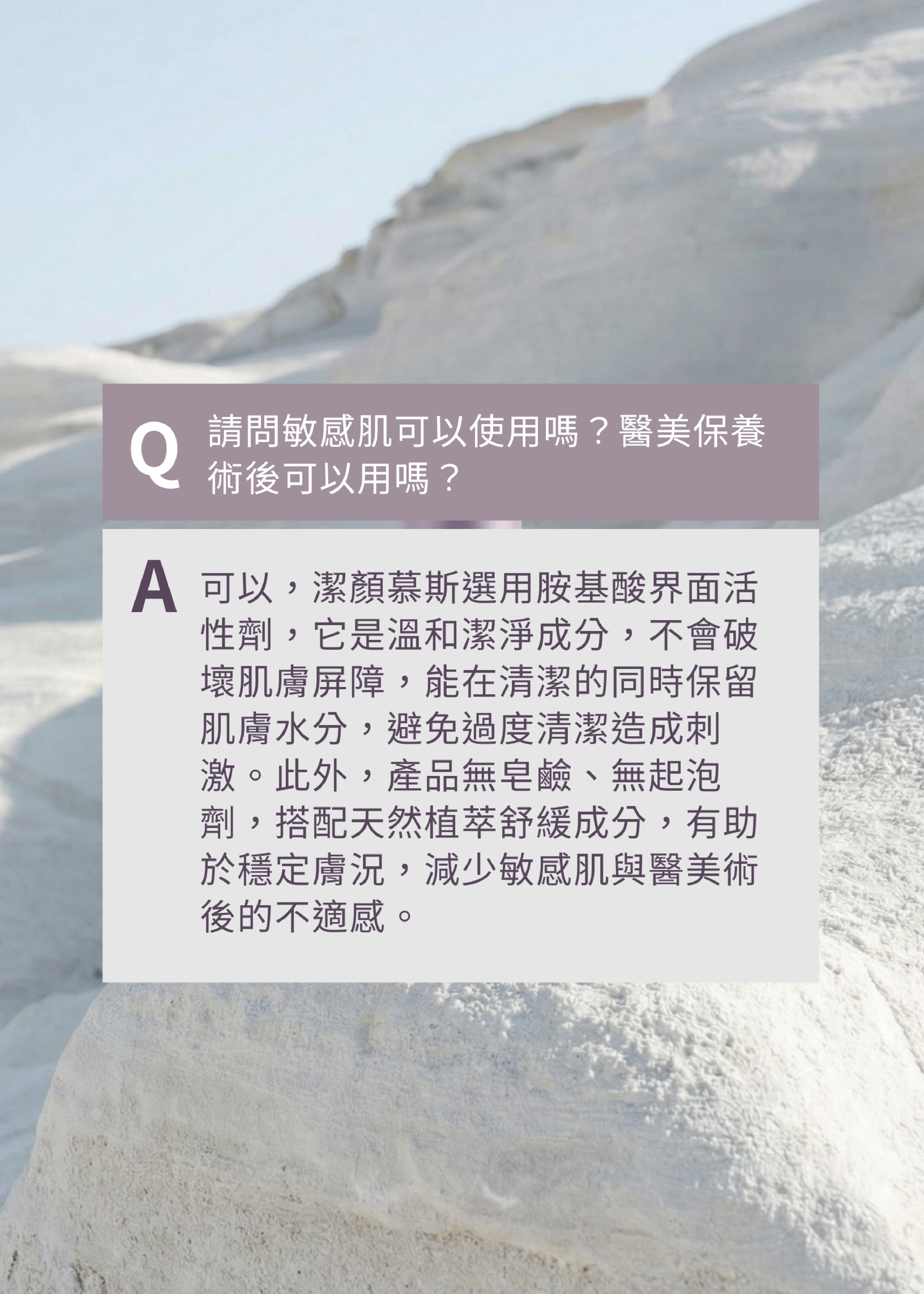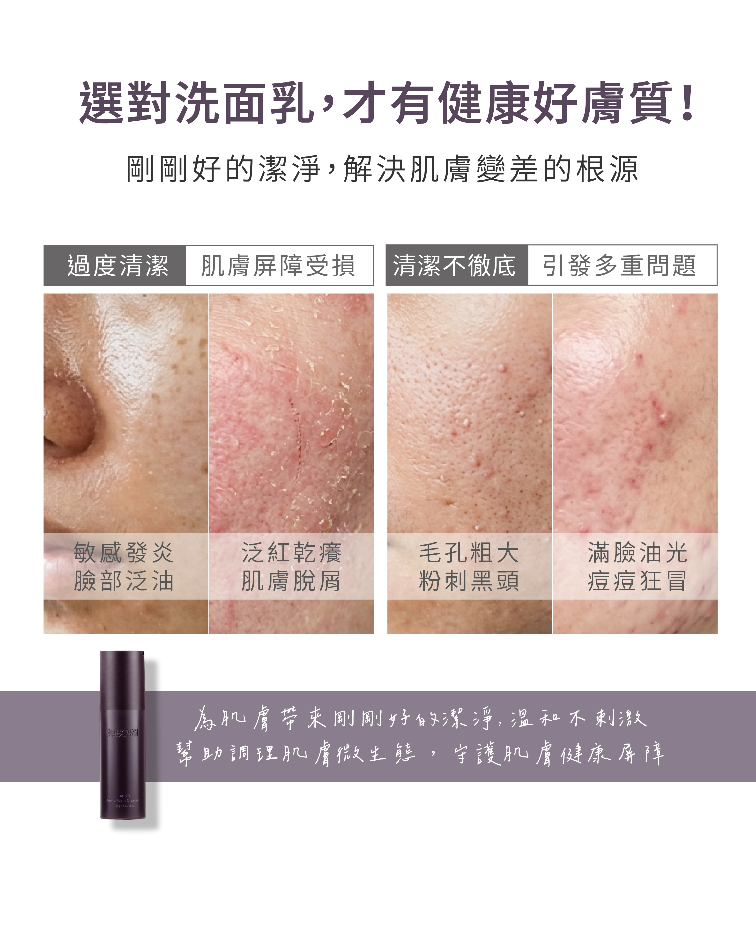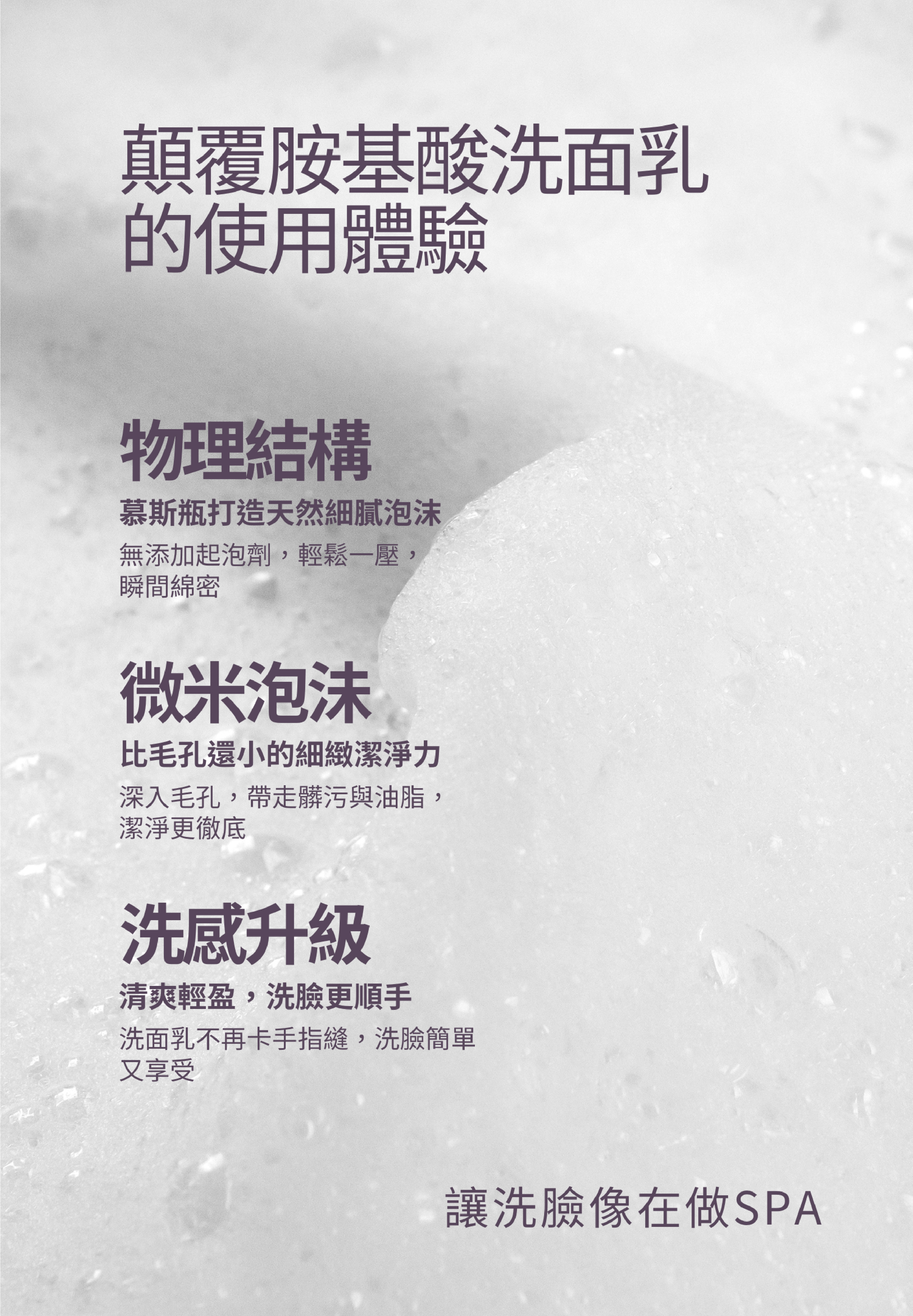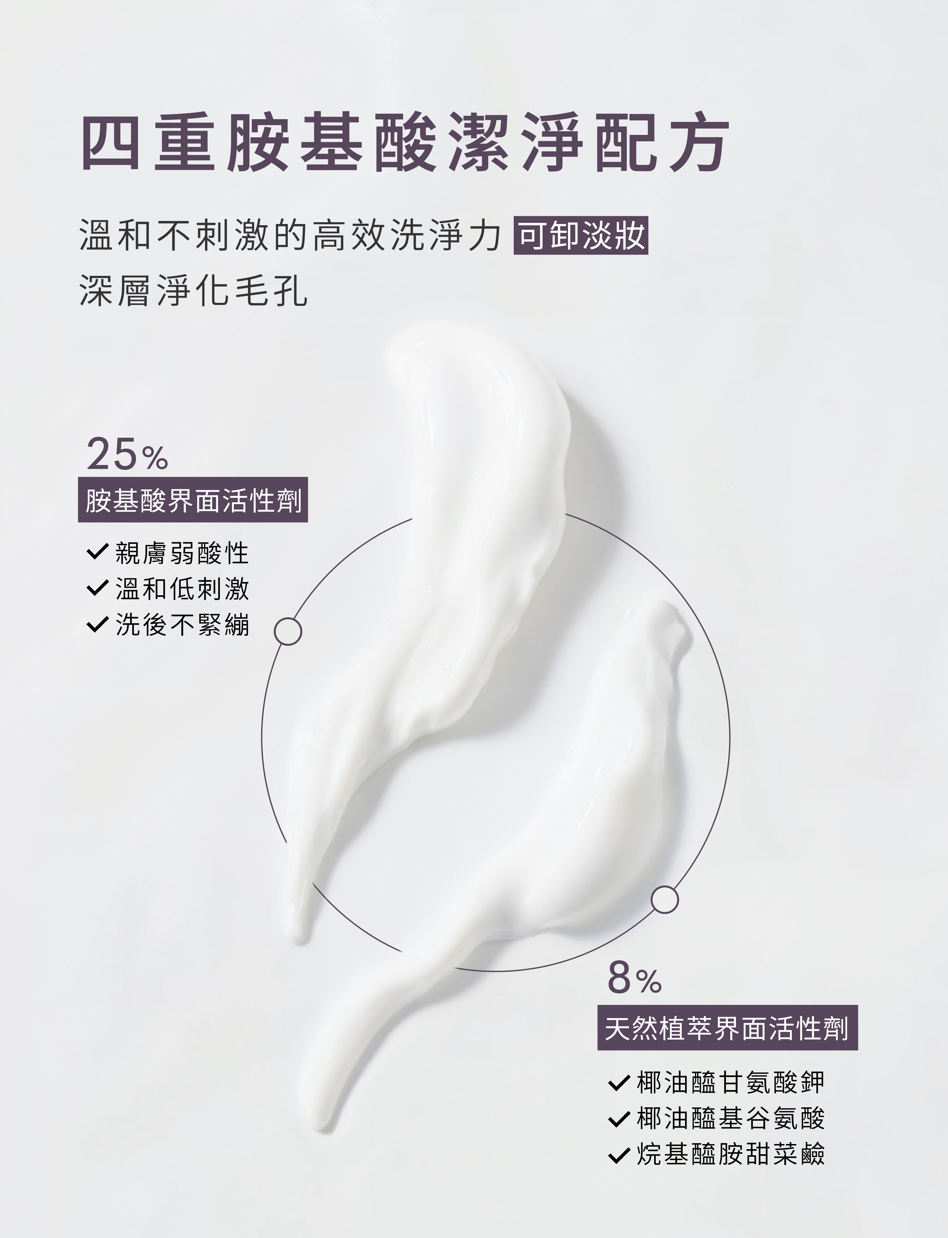 洗臉,不只是清潔,更是養膚的開始。這是一款兼具清潔與修護概念的 胺基酸洗面乳。以 33% 高濃度胺基酸潔淨配方溫和洗淨毛孔髒污與多餘油脂,搭配 49% 黃芩酵母精萃取代純水,幫助舒緩不穩定膚況、維持肌膚健康平衡,再結合 15% 保濕鎖水精華,讓洗後肌膚依然水潤舒適。綿密微米泡沫深入毛孔,洗後不乾澀、不緊繃、不刺激,敏感肌、痘痘肌與全膚質皆適用。