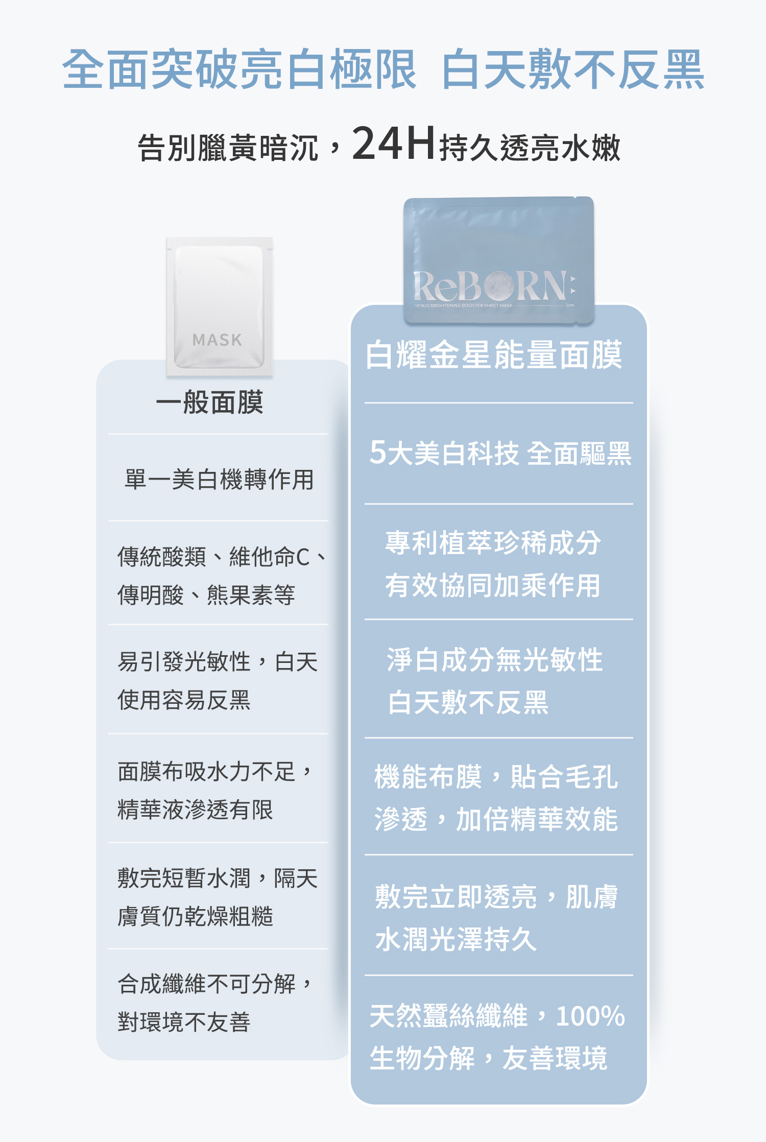 白耀金星美白能量面膜_拒絕短暫亮白,真正實現持久透亮。以5大美白科技,搭配多重有機植萃活性成分,從肌底改善 暗沉、膚色不均、乾燥粗糙與缺乏光澤 等問題進行更全面的亮白修護,而非短暫表面假白。