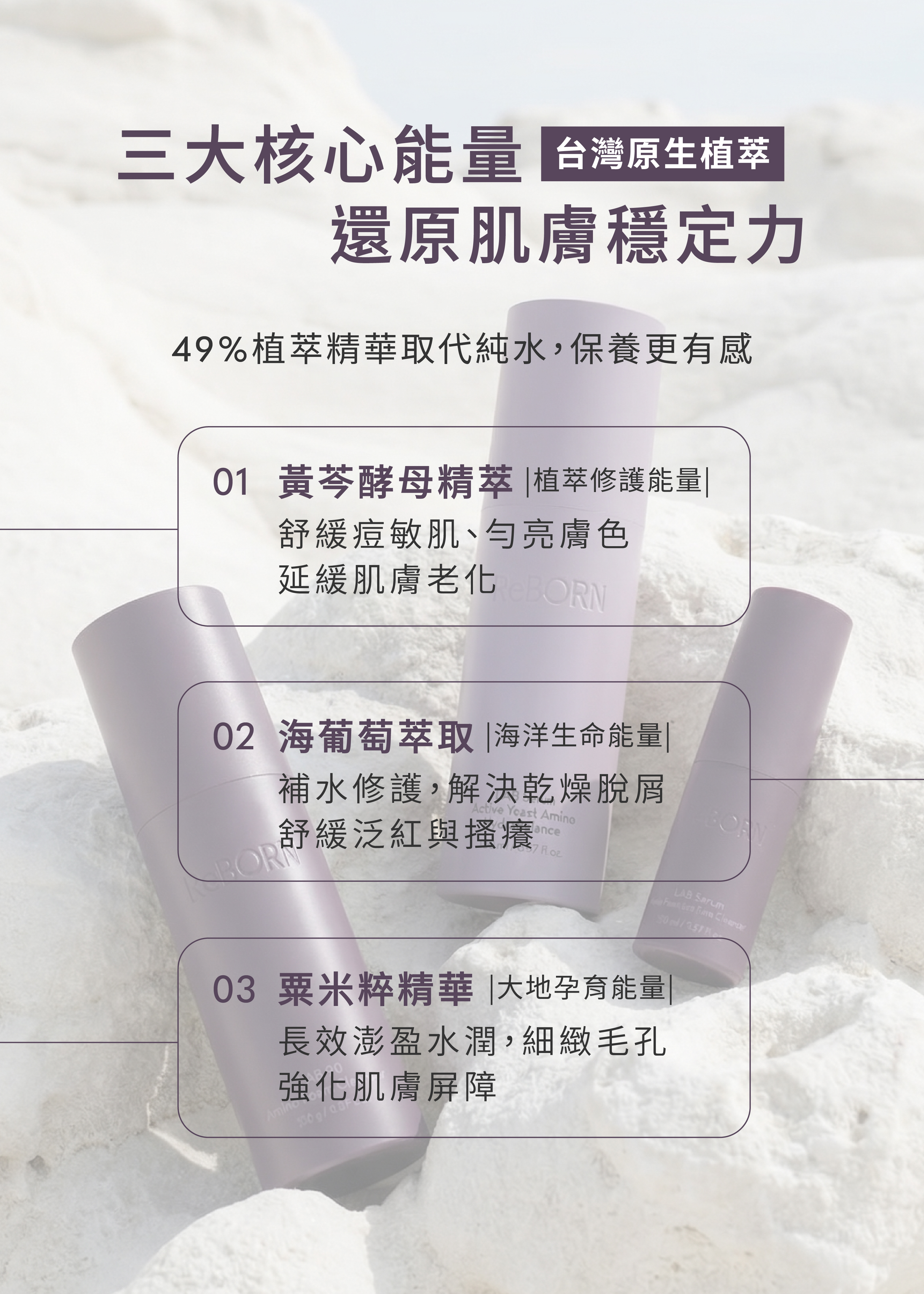 酵母胺基酸養膚潔顏慕斯_這是一款兼具清潔與修護概念的胺基酸洗面乳。以 33% 高濃度胺基酸潔淨配方溫和洗淨毛孔髒污與多餘油脂,搭配 49% 黃芩酵母精萃取代純水,幫助舒緩不穩定膚況、維持肌膚健康平衡。
